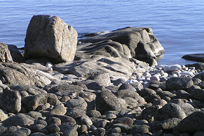 High shoreline cliff just north of Bönhamn. Exposed location, with rough seas coming in from the northeast.