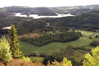 Nordingrå´s highest mountain, 333 m above sea level. Its cap was a tiny islet in tha vast sea, formed after the last Ice age, and still retains a cover of moraine where trees grow today.
