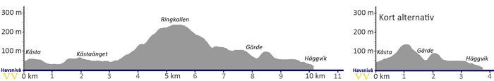 Etappen börjar i Kåsta. Där delar sig Världsarvsleden och det finns två alternativ för att ta sig till Häggvik. Det kortare alternativet följer inledningsvis den branta vägen som leder upp till masten på Ringkallen och viker sedan ner på en stig mot Gärde.