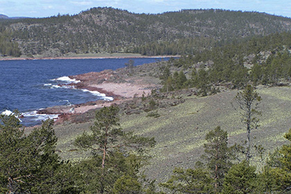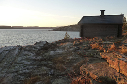Old shorelines show the effects of the ongoing land uplift, following the last Ice Age. Prehistoric site with 14 cairns from the Bronze Age. Viewing platform shaped as an inverted ship frame.