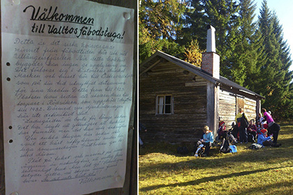 ”Detta är det sista kvarvarande minnet från fäbodtiden här ute vid Ullångersfjärden.”  Så börjar det handskrivna anslaget som välkomnar alla till kokhuset på Valto fäbod.  Anslaget vittnar om en svunnen tid då det var brukligt att kreaturen gick på skogen och betade.